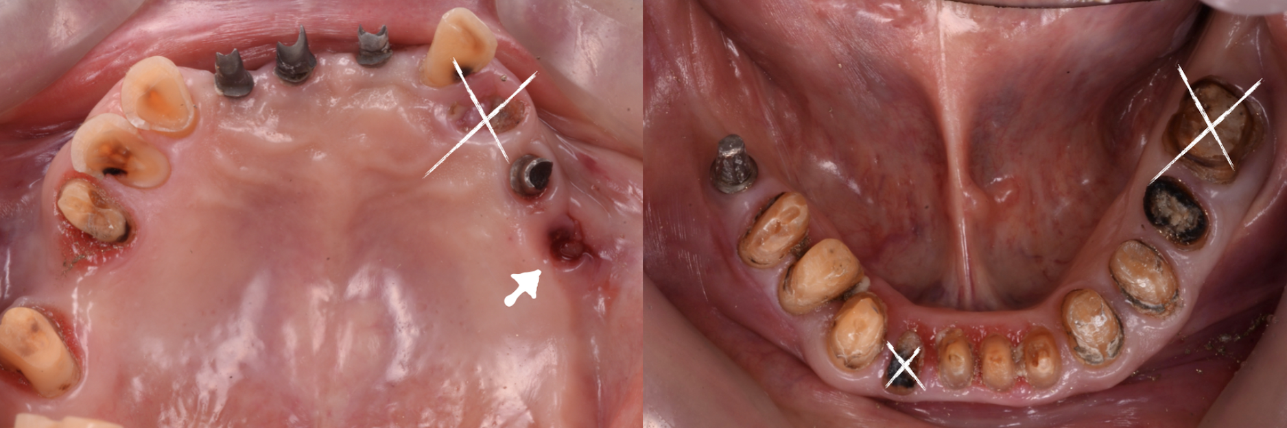 すでに入っているインプラントと追加埋入および補綴治療で審美的機能的に回復させた症例