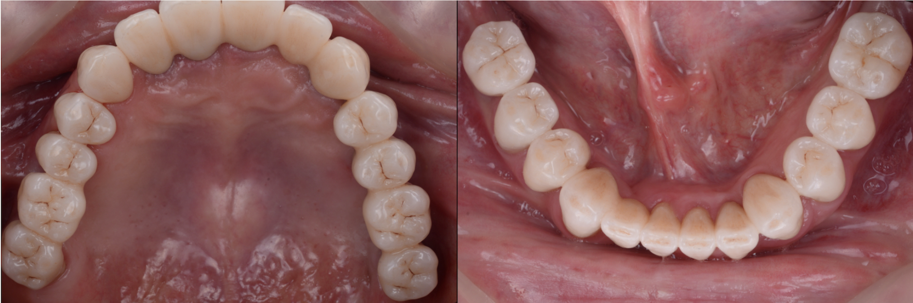 | 治療内容 | インプラントと補綴治療 もともと入っていたインプラントを利用しながら全顎的に治療をした。 二度のプロビジョナルレストレーションを経ることにより最良の結果を得ることができた。 |