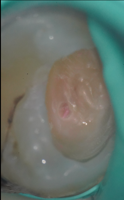 虫歯が深く進行していると、治療中に歯髄(神経)に達することがあります。