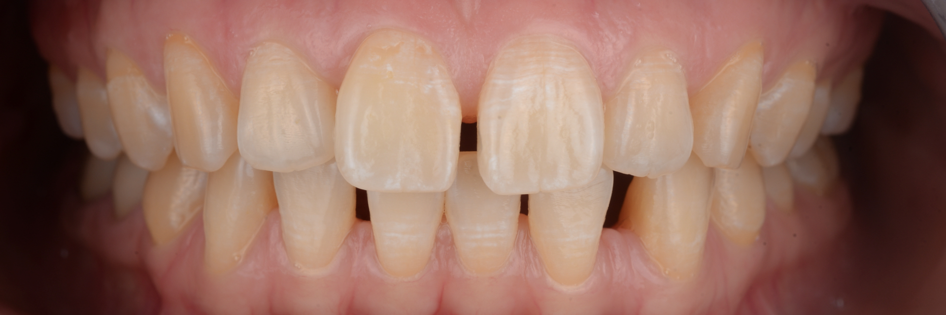 | 治療内容 | 上下に入っている被せ物を外し、プロビジョナルレストレーションを装着。 治療回数ほぼ1日で応急的に噛み合わせと見た目を獲得。 ただし、後日根管治療等の治療は必要。 |