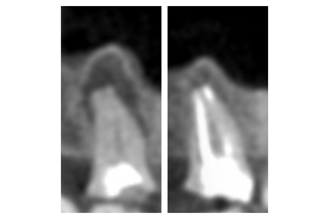 根管治療 40代歯茎から膿が出た男性 2024.09.20 【40代 男性】膿が溜まっている歯の根っこの治療(根管治療) 治療前 治療後 治療中 根の先に膿が溜まっており、このままではクラウンを被せることができない状態でした 術前術後2ヶ月でX線写真で改善が認められます 治療で得られるメリット:不快症状の消失、感染からの解放 担当医 荻原 太郎 主訴 膿をとって、被せ物を入れたい 期間 2回 費用 9万円 治療内容 マイクロスコープを使用した根管治療 治療に伴うリスク 術後の一時的な痛み違和感 術後の腫れ(フレアーアップ) 関連症例