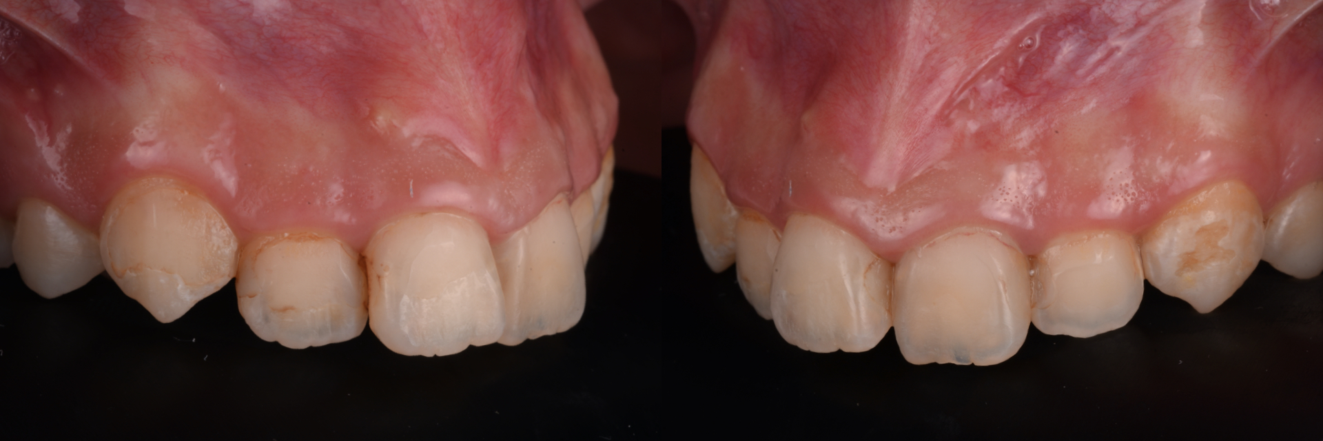 根管治療後は炎症が抑えられたため動揺がなくなり、2回のインナーブリーチによる色調回復で治療を終えました。患者様も周りからわからなくなったと言われ喜んでいました。