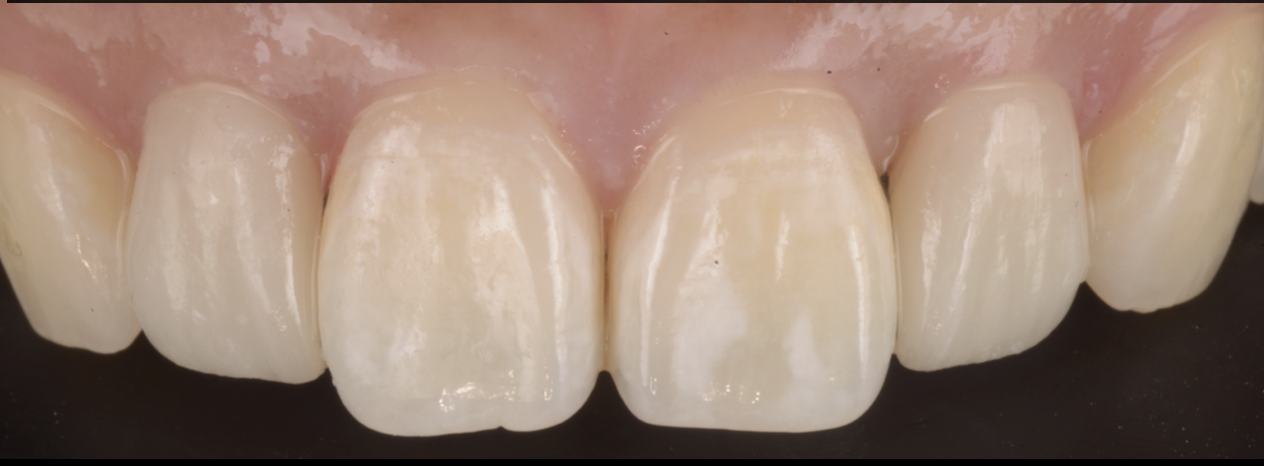 矯正治療によりバイトアップして、前歯を下げて矮小歯のところはラミネートベニアで修復した