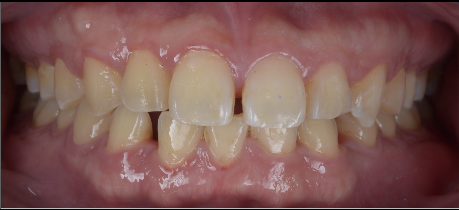 - 過去に全顎的な歯科矯正を受けており、その後戻りが原因ですきっ歯になっていた。