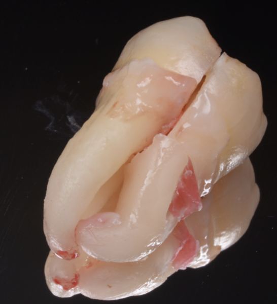 - 破折した歯をエクストルージョン(部分矯正)により歯肉上に引き上げ、歯肉整形をした後プロビジョナルレストレーション(暫間的補綴物)を装着。隣在歯のダイイレクトボンディングを併用し補綴治療を完結させたケース。