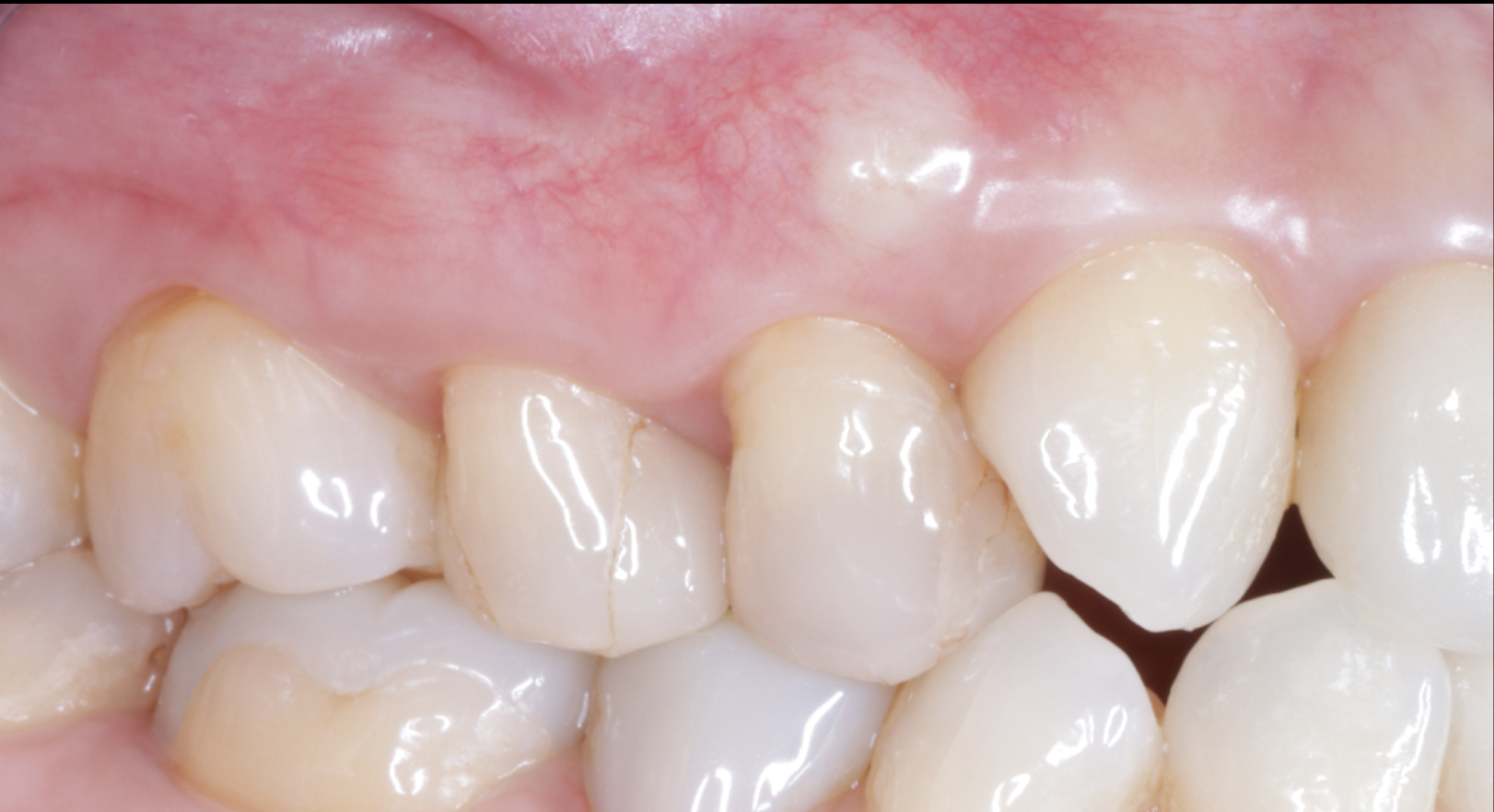 - 右上2が保存不可能抜歯に至った。歯槽骨、歯肉のボリュームダウンを最小限にするために、