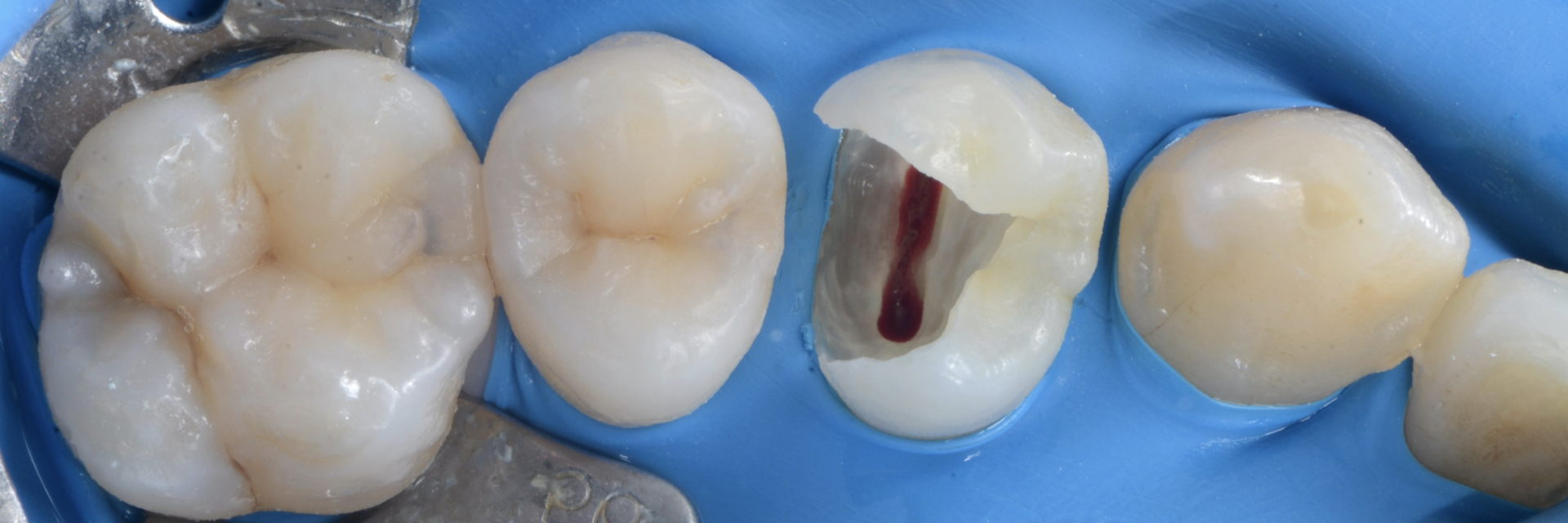 - ラバーダムを使用し、唾液が入らない環境下で治療。